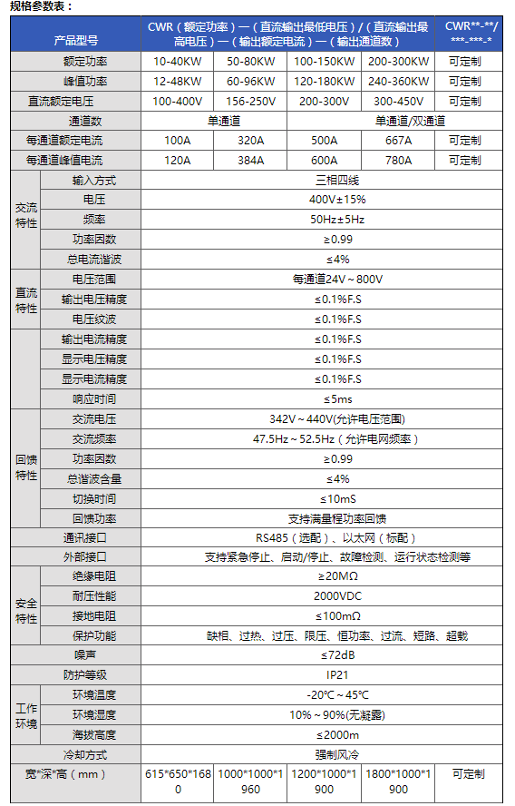 CWR-D系列電池模擬器可模擬動(dòng)力電池組的類(lèi)型,串聯(lián)或并聯(lián)節(jié)數(shù),SOC指標(biāo)及電池組放電過(guò)程中電池內(nèi)阻的變化過(guò)程等輸出特性。系統(tǒng)采用可饋網(wǎng)式設(shè)計(jì),模擬動(dòng)力電池組輸入對(duì)新能源汽車(chē)電機(jī)控制器的輸入功率,輸出電流,過(guò)載能力,耐壓及電機(jī)的效率,堵轉(zhuǎn)電流測(cè)試,高轉(zhuǎn)速,超速,電流反饋等性能進(jìn)行模擬實(shí)驗(yàn)。能使超速實(shí)驗(yàn)中的反電動(dòng)勢(shì)的能量回饋電網(wǎng),避免控制器損壞。
